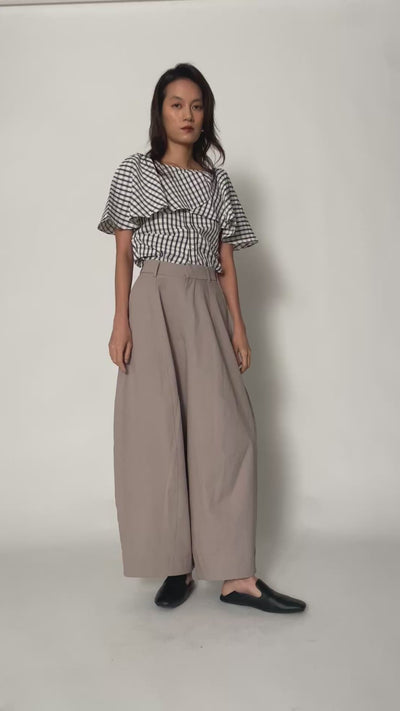 生地感は薄手でシャリっとしているので暑い時期も着やすく、ワイドのデザインも素敵でした。